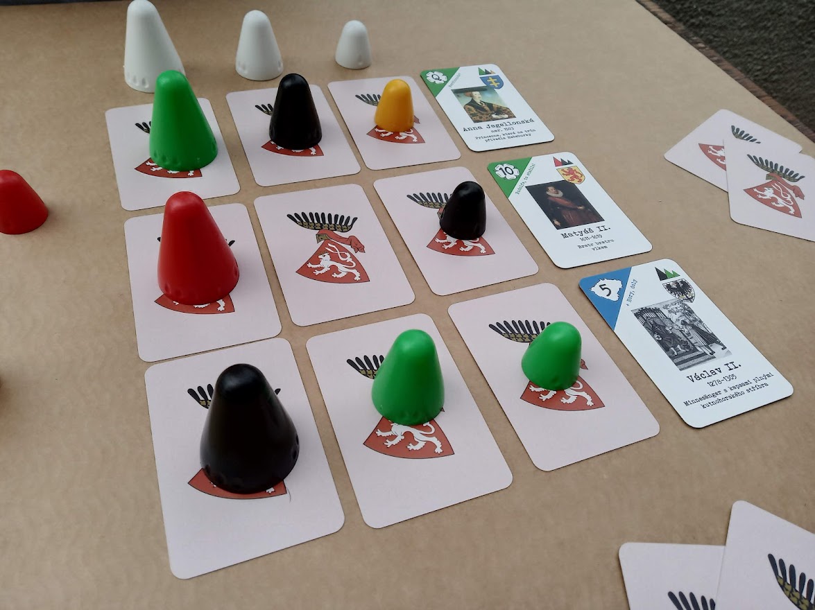 - Potřebné vybavení - balíček karet Knížat, králů a královen českých, jedna sada pyramidek a šestibarevná kostka
